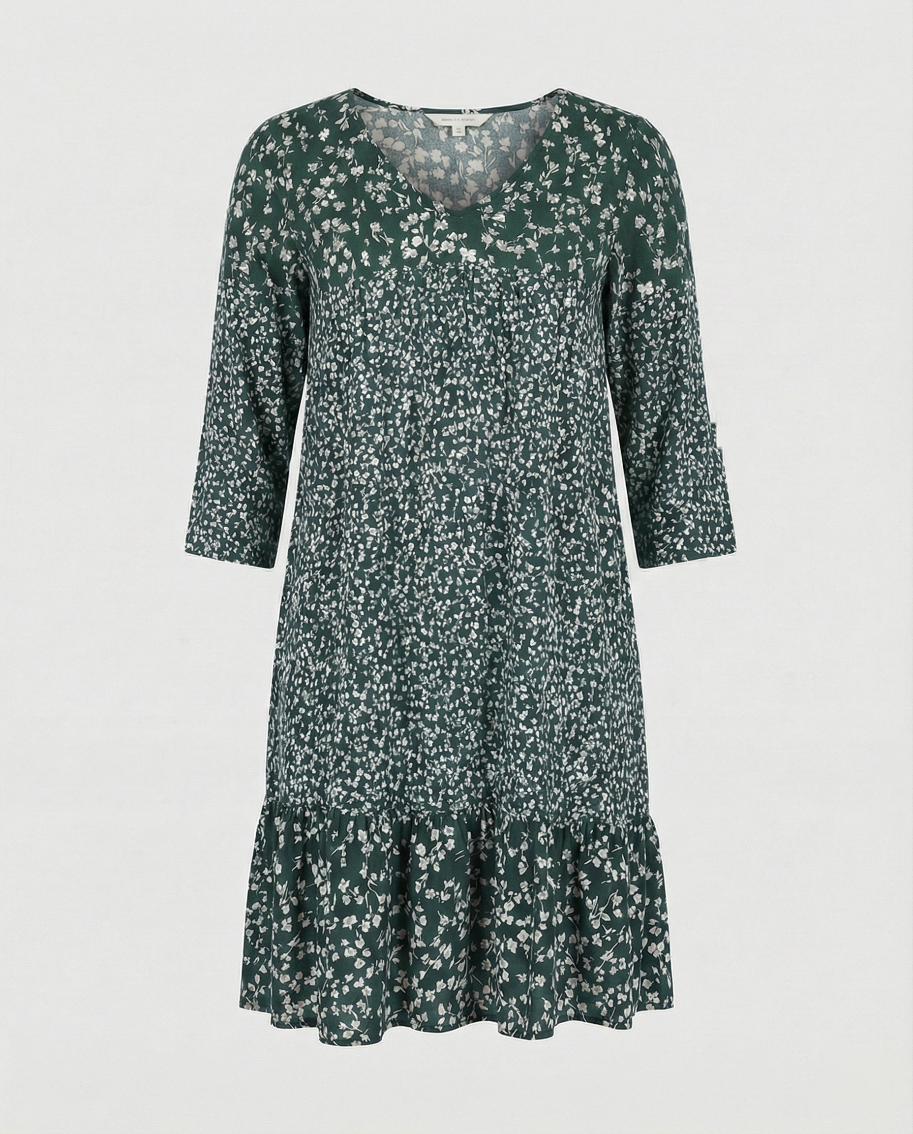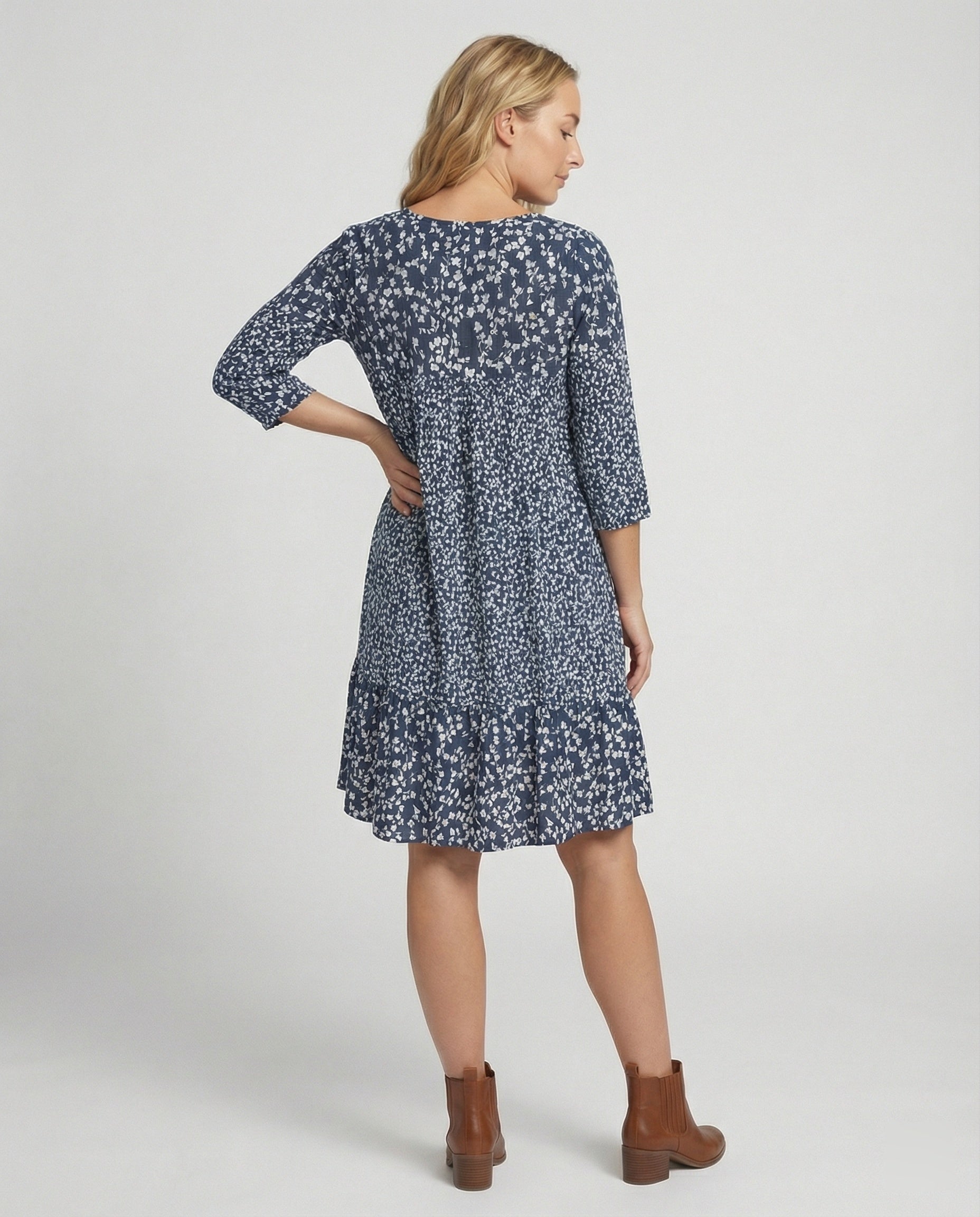 Von seinen 3/4-Ärmeln bis zum fließenden Midi-Saum spricht jedes Detail dieses Kleides für eine Frau, die sowohl Stil als auch Komfort schätzt – weil sie weiß, dass sie sich nicht entscheiden muss.